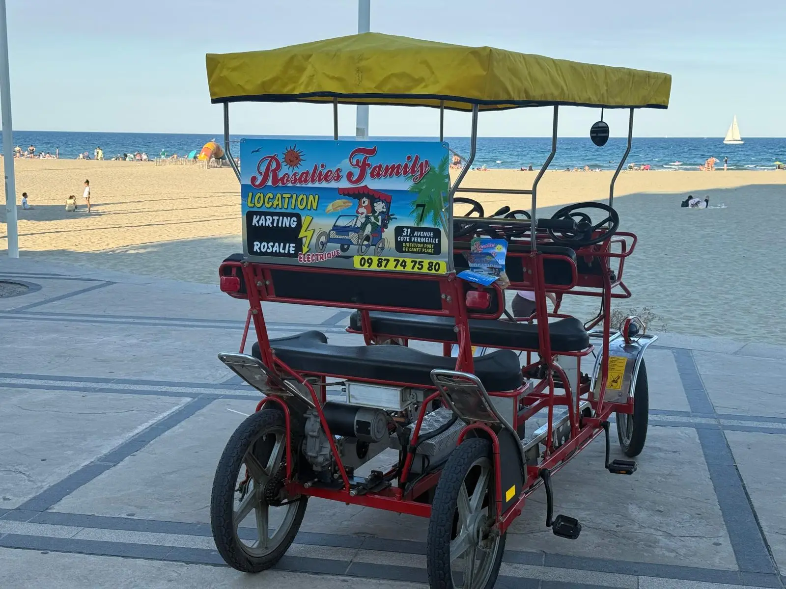 Sergi Vilar Crivellé2025-09-02Trustindex vérifie que la source originale de l'avis est Google. Molt divertit llogar una bicicleta familiar. El preu és econòmic i sempre tenen bicis familiars disponibles. Vam agafar la bici no elèctrica i creiem que 30 minuts de passeig és suficient per passar una bona estona. Anaïs Marcou2025-08-28Trustindex vérifie que la source originale de l'avis est Google. Très bonne expérience en famille. Nous avons loué une Rosalie avec assistance électrique, balade jusqu'au port et Canet sud Amandine2025-08-27Trustindex vérifie que la source originale de l'avis est Google. Accueil très sympa, belle activité en famille, une visite originale de Canet. Nous recommandons Laila Louly2025-08-20Trustindex vérifie que la source originale de l'avis est Google. Experience tres divertissante accueil très chaleureux et rigolo je recommande de fouuuu vous regretterez pas du tt Remy Ronceray2025-08-19Trustindex vérifie que la source originale de l'avis est Google. Bien, sympa Jessica Dana2025-08-17Trustindex vérifie que la source originale de l'avis est Google. Très bon moment avec mes enfants, nous avons loué une rosalie et un kart. Juste a revoir l’électrique dans la rosalie je pense.. Yagoubi Oswald2025-08-14Trustindex vérifie que la source originale de l'avis est Google. Equipe très sympathique et arrangent. Comme papa de 2 enfants autistes je n oublie pas. Merci AK2025-08-14Trustindex vérifie que la source originale de l'avis est Google. Rosalies Family ON RECOMMANDE 1. Parce que c’est un super moyen pour découvrir la côte Vermeille et même plus. Nous sommes allés jusqu’au village de pêcheurs et à Saint-Cyprien en Rosalie et avons pu profiter d’un superbe coucher de soleil avec mon enfant de 12 ans. Tout ça grâce aux conseils de Jérôme ! On le remercie. 2. Parce que le sport c’est aussi ça les vacances, et pour le coup c’est super cool, qu’elles soient électriques ou pas, ça reste agréable et tellement drôle 🤣 3. Parce que les rosalies c’est une petite part de notre enfance à partager à deux ou à plusieurs… Alors on like ! Clement rerolle2025-08-14Trustindex vérifie que la source originale de l'avis est Google. Acceuil très agréable , très bien rigolé avec le Mr qui gère ça . Je recommande fortement Elodie Mariot2025-08-11Trustindex vérifie que la source originale de l'avis est Google. Bon moment entre amis même si avec le vent nous avons un peu galerer ,le patron est très gentil et a su très bien nous conseiller